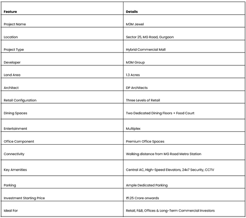 If you’re looking for a commercial property investment in Gurgaon that balances location, design, footfall and brand value, M3M Jewel MG Road checks a lot of boxes.